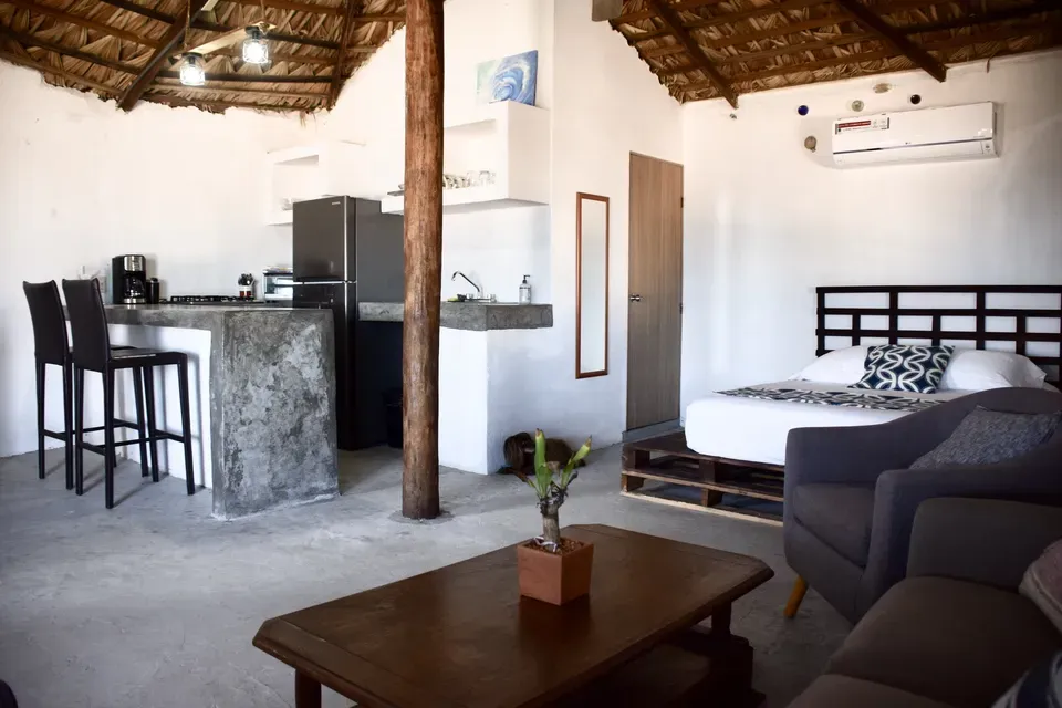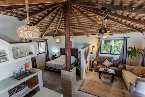 From the bed you can hear the sound of the sea and see the sun rise.